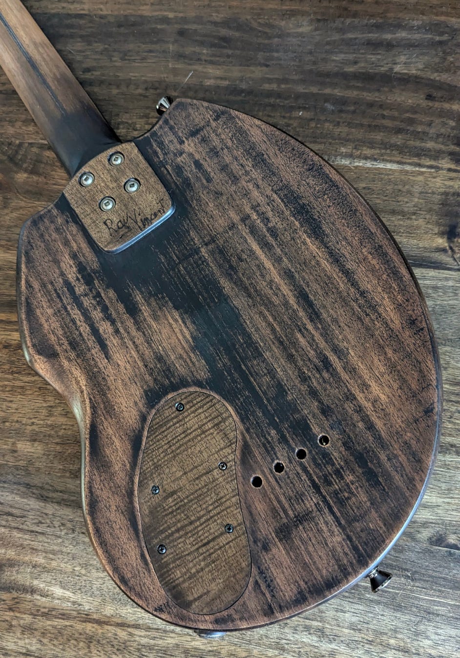 • Myrtle headstock, back plates and bridge.