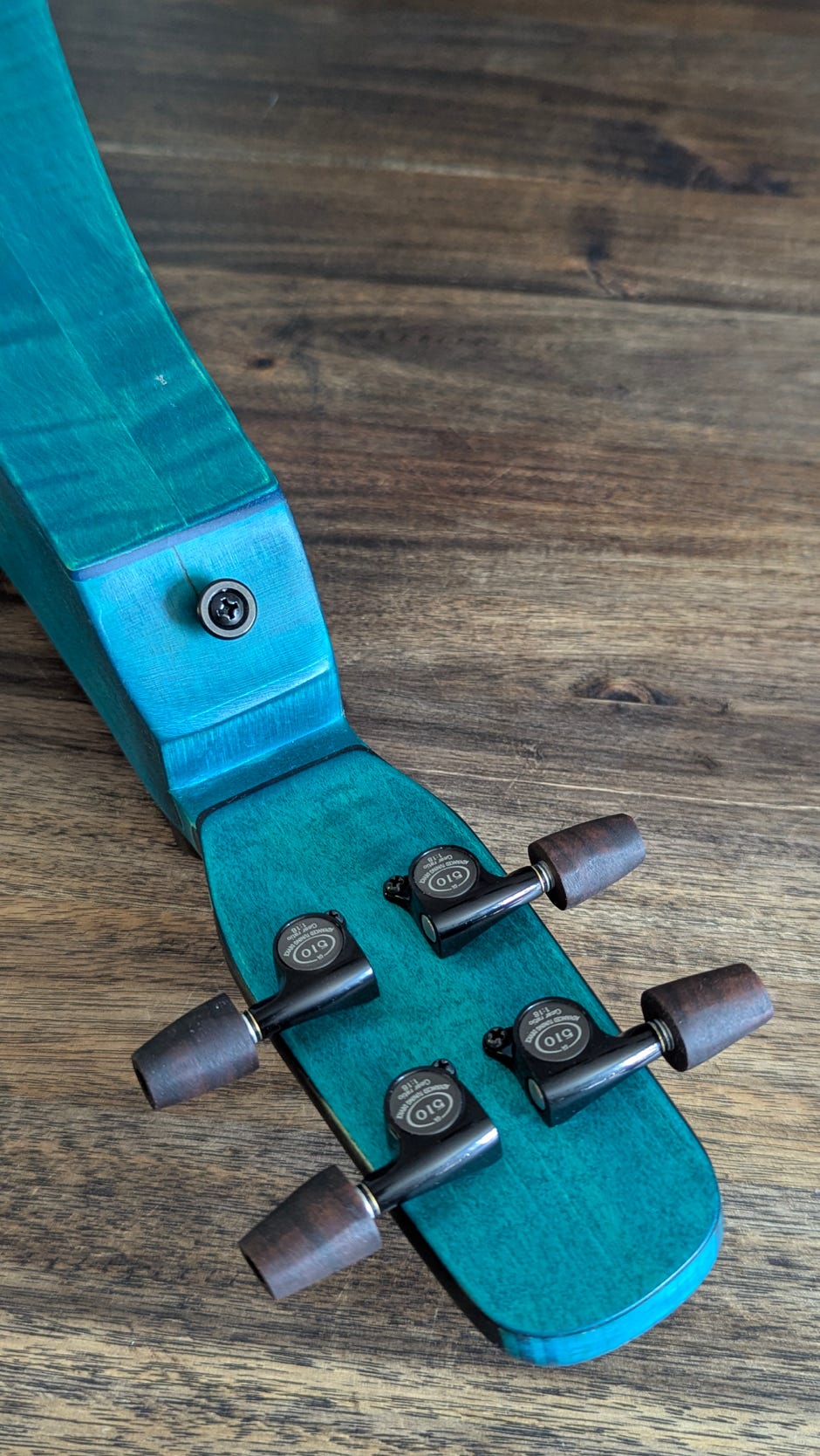 This year I thought it would be great to have something not too expensive, easy to play and I wanted to use up some old tuners and fret wire, but also a piece of art that has some of my signature art flare.