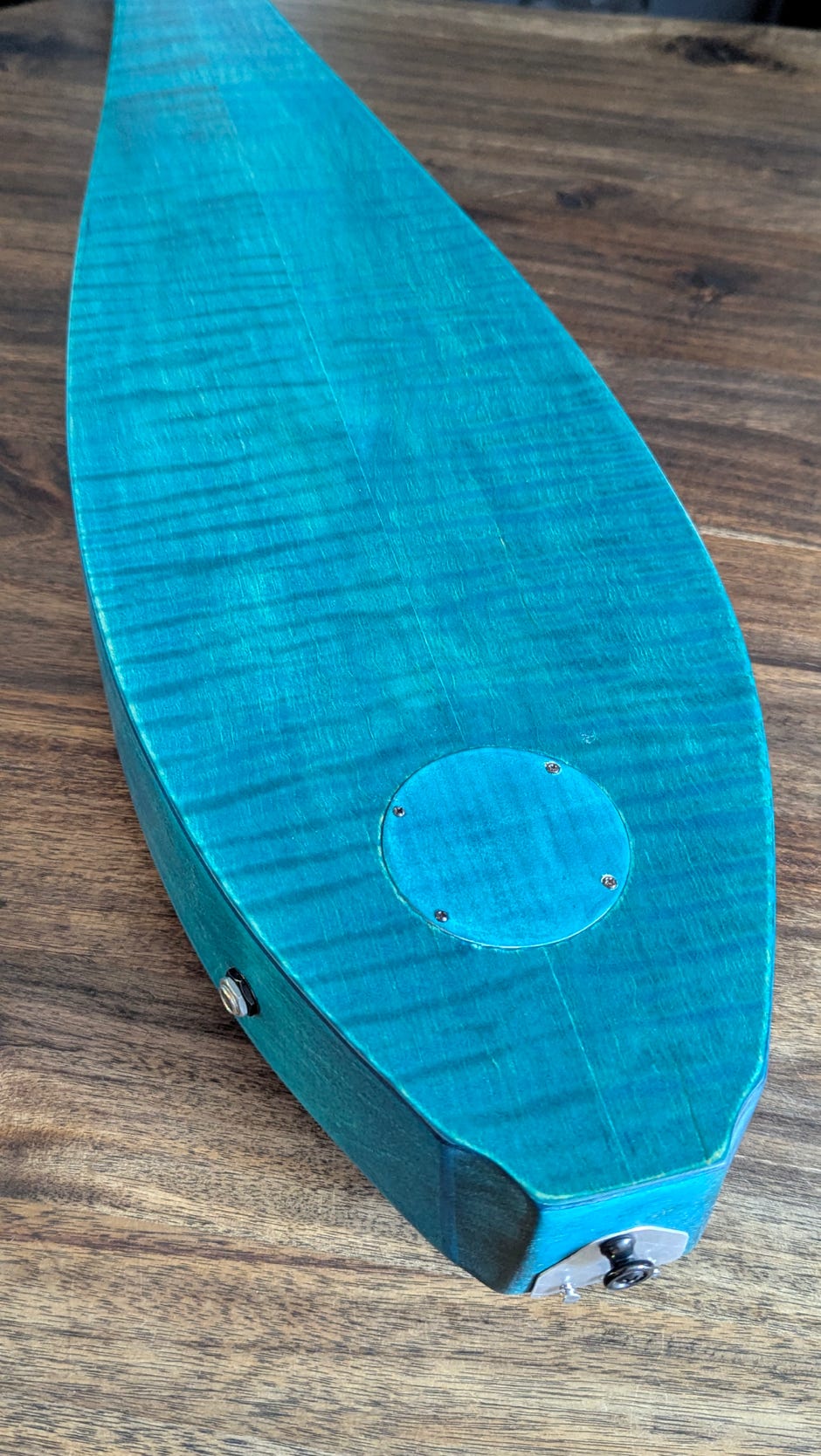 “The dulcimer arrived in Alaska this afternoon….. safe and sound! I plugged in and have been both flatpicking and strumming it. I truly love it Ray…… sounds warm and wonderful. It is so beautiful and different from any other mountain dulcimer out there. The pyrography, inlays, soundholes and other creative details truly make this instrument a work of art as well. My unique “Blue Moon” dulcimer:) I love everything about it♥️. Thank you Ray, you do incredible work!”